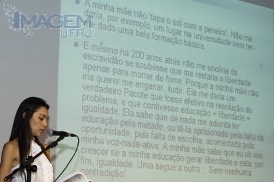 E mesmo há 200 anos atrás não me aboliria da escravidão se soubesse que me restaria a liberdade apenas para morrer de fome. Porque a minha mãe não iria querer me enganar, iludir. Ela me daria um verdadeiro Pacote que fosse efetivo na resolução do problema, e que contivesse educação + liberdade + igualdade. Ela sabe que de nada me adianta ter educação pela metade, ou tê-la aprisionada pela falta de oportunidade, pela falta de escolha, acorrentada pela minha voz-nada-ativa. A minha mãe sabe que eu só vou crescer se a minha educação gerar liberdade e esta, por fim, igualdade. Uma segue a outra... Sem nenhuma contradição!